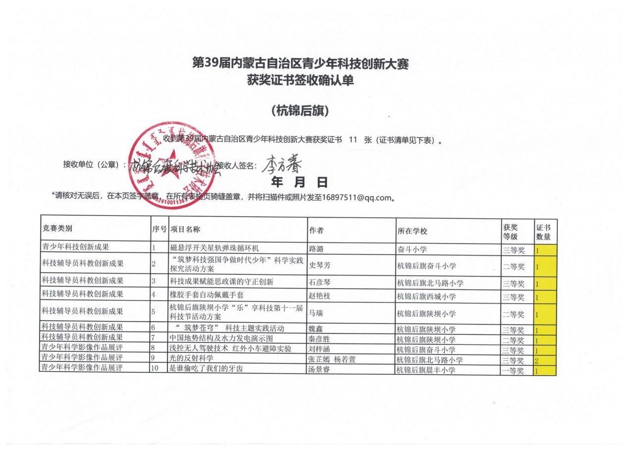 近日,第39届内蒙古自治区青少年科技创新大赛获奖结果公示结束,杭锦后旗青少年科技创新成果亮眼。