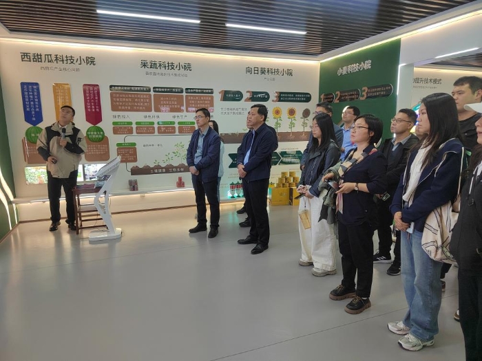 专家服务团首先参观了二道桥科技小院展厅,实地了解入驻研究生科研及生活环境等,科技小院徐俊平博士介绍了科技小院的组织结构、发展历程、发展现状、基本做法以及杭锦后旗各科技小院的产业核心问题和技术集成成果等,分析了现代农业科研的特点和科技小院在农业绿色发展、农民增产增收等方面的重要作用。专家们了解了二道桥镇在科技赋能产业发展方面的探索与实践,对展厅所呈现的产业发展思路和科技创新成果给予了高度认可,并与学生们展开了深入交流,建议科技小院与企业形成联动模式,推动成果产业化落地。